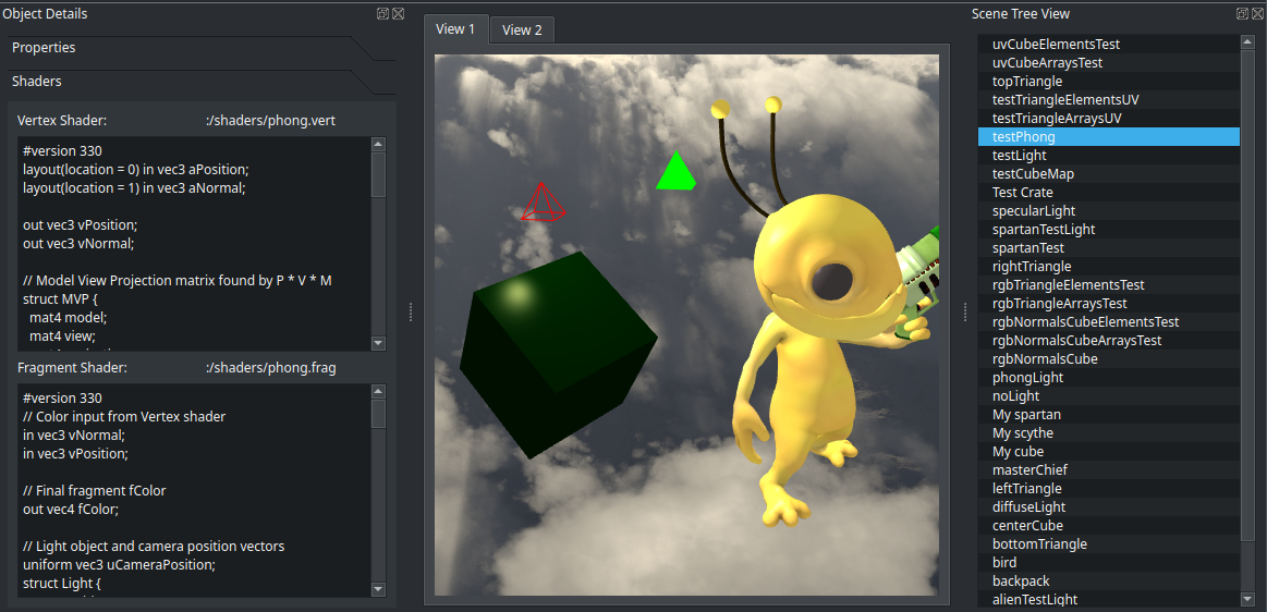 • Runtime reloading of modified GLSL shaders attached to objects within scenes.
